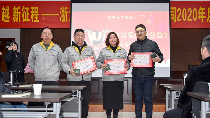 會議表彰了2020年優(yōu)秀儲備人才、新人進步獎、美麗工廠推進進步獎、學(xué)習(xí)強國積分獎、創(chuàng)新獎、質(zhì)量之星、營銷之星、優(yōu)秀團隊、突出貢獻獎、突出貢獻獎等多個獎項。