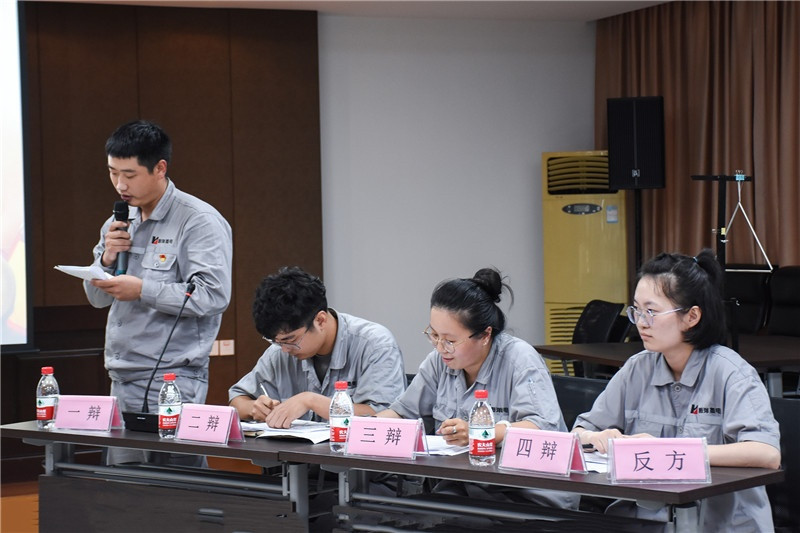 本次辯論賽有中達(dá)新材隊(duì),集團(tuán)本部隊(duì),中達(dá)國(guó)際隊(duì),恒洋熱電隊(duì),美克斯機(jī)械隊(duì),中達(dá)建設(shè)、材料合作隊(duì)六組隊(duì)伍參加。擔(dān)任本次辯論賽評(píng)委的有中達(dá)新材黨支部書記、總經(jīng)理吳利陽(yáng),中達(dá)新材總經(jīng)理助理徐姚松,中達(dá)集團(tuán)團(tuán)委書記、董事長(zhǎng)秘書、宣傳部主任董飛,中達(dá)集團(tuán)婦聯(lián)副主席、人力資源部主任吳雪艷,派利公司顧問(wèn)陳志華。比賽共有4個(gè)辯題,兩兩PK,最后得分最高的兩組進(jìn)行決賽,評(píng)委們根據(jù)規(guī)則和標(biāo)準(zhǔn)進(jìn)行打分,最終選出最佳團(tuán)隊(duì)和最佳辯論手。
