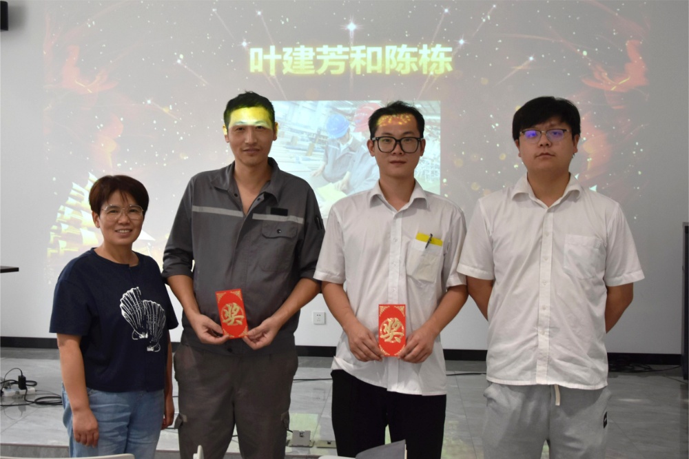 本次頒獎儀式師父獎勵由吳月琴吳總頒發(fā),徒弟獎勵則分別由二車間主任干永明、一成品車間主任何張浩頒發(fā)。